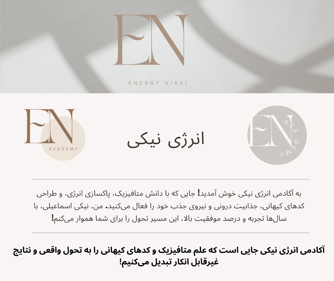 آکادمی انرژی نیکی یک مجموعه تخصصی در حوزه پاکسازی انرژی، جذب، و ارتقای فرکانسهای شخصی است که با بیش از ۵ سال تجربه و صدها دانشجوی موفق، به یکی از معتبرترین مراکز آموزش متافیزیک و توسعه فردی تبدیل شده است.